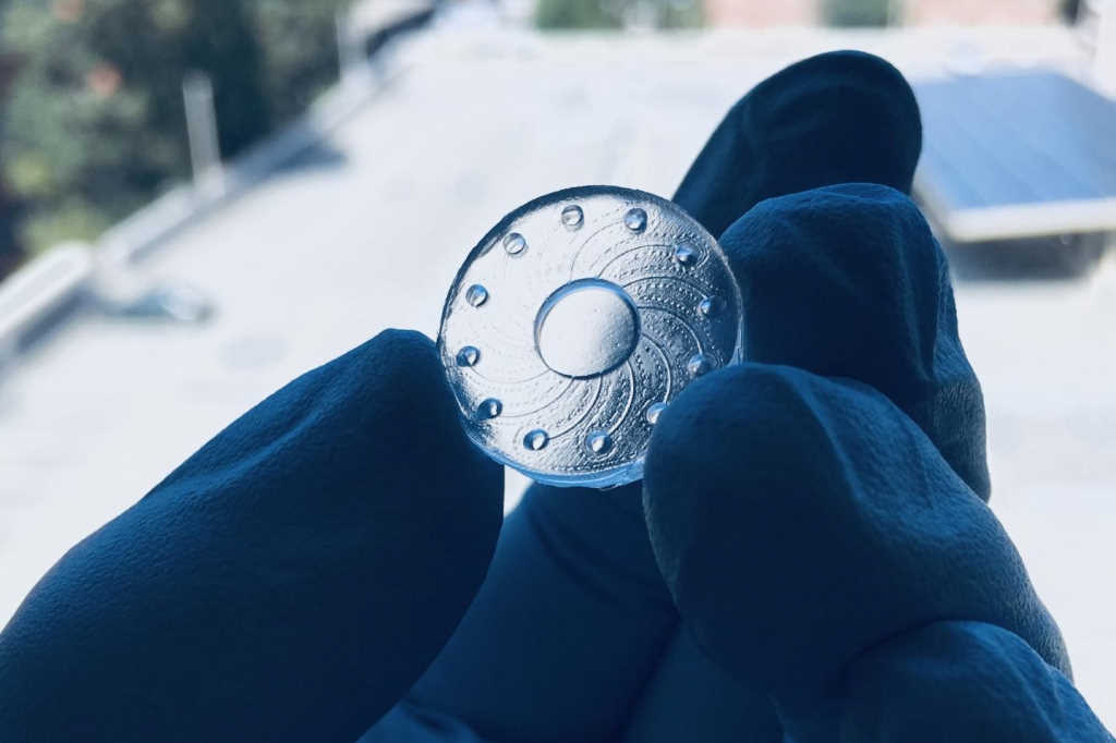 Tear biomarkers include sodium ions, which indicate dry eye disease, glucose levels for diabetes and pH, for cell viability, drug effectiveness and disease signs. But collecting tears in real time has been a challenge. Terasaki’s new CL prototype, however, contains microchannels which guide tear flow into tiny reservoirs for collection and monitoring. After extensive testing, researchers also noted that when the hydrogel was mildly dehydrated, liquid flow in the channels would stop, but would resume when additional rhythmic pressure was applied, providing support for the idea that blinking would also encourage tear flow.