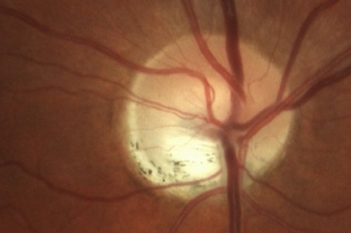 Fig 4. Patients with moderate to high myopia can sometimes have a disc that resemble glaucoma