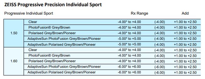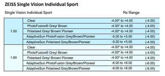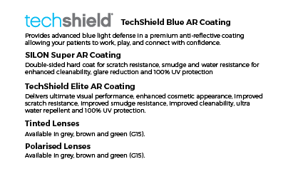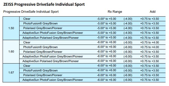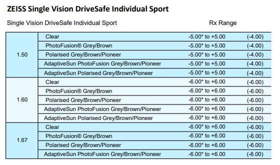 • Clear 1.50, 1.53 Trilogy, 1.59 Poly, 1.67