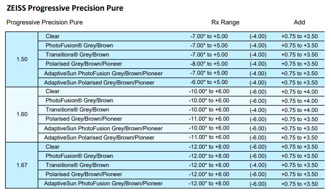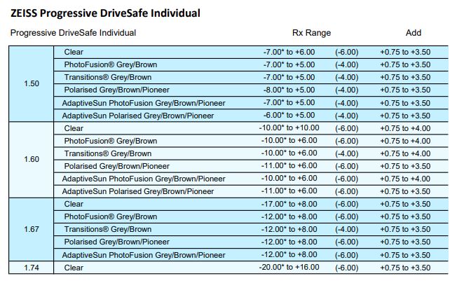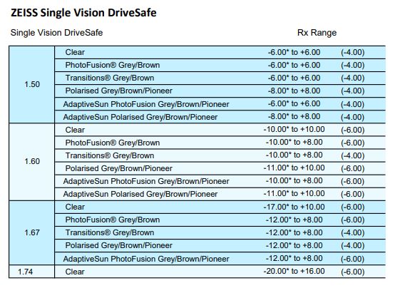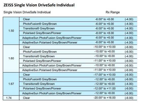 • Clear 1.50, 1.53 Trilogy, 1.59 Poly, 1.6, 1.67, 1.74