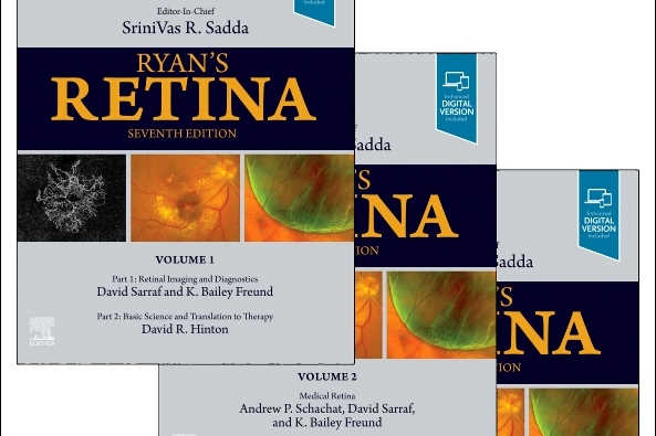 Ryan’s Retina (seventh edition) is edited by Professors SriniVas Sadda, Andrew Schachat, Charles Wilkinson, David Hinton, Peter Wiedemann, Bailey Freund and David Sarraf