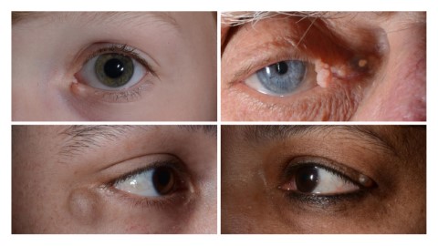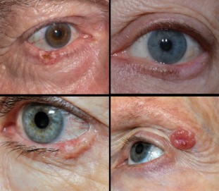 The ‘big three’ skin cancers arising around and on the eyelids are basal cell carcinoma (BCC), squamous cell carcinoma (SCC) and melanoma. Rarer malignancies can arise from specialised eyelid tissues unique to this region, such as sebaceous cell carcinoma arising from the meibomian glands - beware the recurrent chalazion.