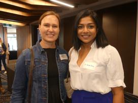 Lizette Jordaan and Dr Narme Deva and (right) MDNZ’s Sarah Berman with Martina Benjamin, Javeria Kazmi and Jackie Low