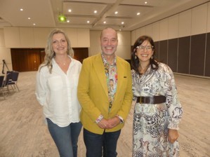 ODMA 2025 speakers Emma Gillies and Adam Spencer with CEO Amanda Trotman