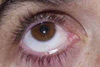 Fig 2. Entropion: the unstable lid margin has rotated onto the ocular surface