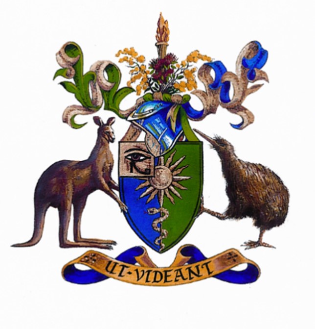 The RANZCO coat of arms and (right) the OSNZ coat of arms