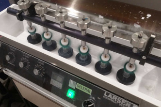 The company has been ISO accredited since 1995 and, in more recent times, has upgraded its lathes to the newest DAC ALM units. A fifth lathe will be installed in June 2018 to keep up with demand (who ever said rigid lenses were dead?). The ALM units are amazing to watch: the speed and precision of how a lens is cut before your eyes is highly impressive. One wonders how lenses ever got made back in the day with only hand lathes available! These multi-tool lathes use robotic loading and laser technology and can cut to sub-micron levels of accuracy; vital when dealing with complex orthokeratology design from fussy practitioners like yours truly. To complement the lathes, various production systems have been developed to ensure accuracy by limiting the handling of lenses by technicians. This includes auto blockers, attaching the button of contact lens material to the mount that the lathe connects to; water-soluble blocking, to reduce the use of solvents on the lens surfaces; interferometers for checking lens power and imperfections; and polishing systems that run with bladder tools rather than the cruder original methods.