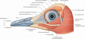 Fig 2. A superficial dissection of the head of a little penguin, Eudyptula minor, left lateral view, showing the structures that surround the eye
