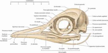 Fig 1. The skull of a little penguin, Eudyptula minor, left lateral view. Note the bony annulus ossicularis sclerae, located in the anterior sclera