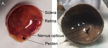Unlike in humans, the avian vitreous is firmly attached to the pecten (Fig 4), and a full posterior vitreous detachment is impossible to achieve without cutting it off the pecten.