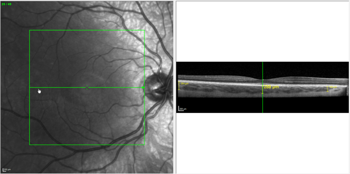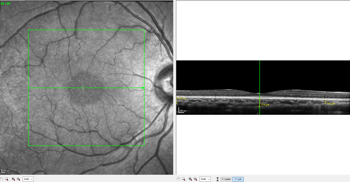 When he returned in February 2024 for his second follow-up, the axial length in both eyes had decreased significantly to R 26.00mm, L 26.05mm (Fig 1). There was also an increase in choroidal thickness from 276μm to 288μm (Figs 2 and 3). The patient has since continued on the combination therapy of ortho-k plus RLRL. He has been compliant with the three minutes, twice-a-day treatment, which is reported digitally to the clinic (Fig 4). OCT measurements did not show any loss of vision or damage to the retina.