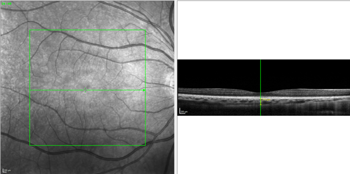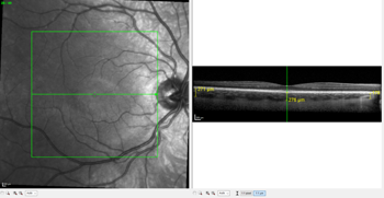 At her follow-up appointment three weeks later, in January 2024, the OCT scan showed an increase in choroidal thickness from 241μm pre-treatment to 274μm, with a reduction in axial length in both eyes, which was significant in the right eye at R 23.8mm, L 24.1mm (Figs 10 and 11).