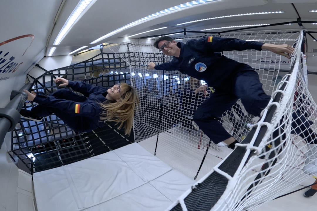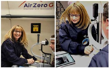 Prof Jennifer Craig conducting a zero-gravity ocular surface exam, courtesy of Novespace and DLR
