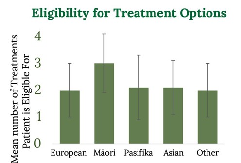 Fig 1. Māori patients had a significantly higher number of treatments they were eligible for at presentation (p=0.003)