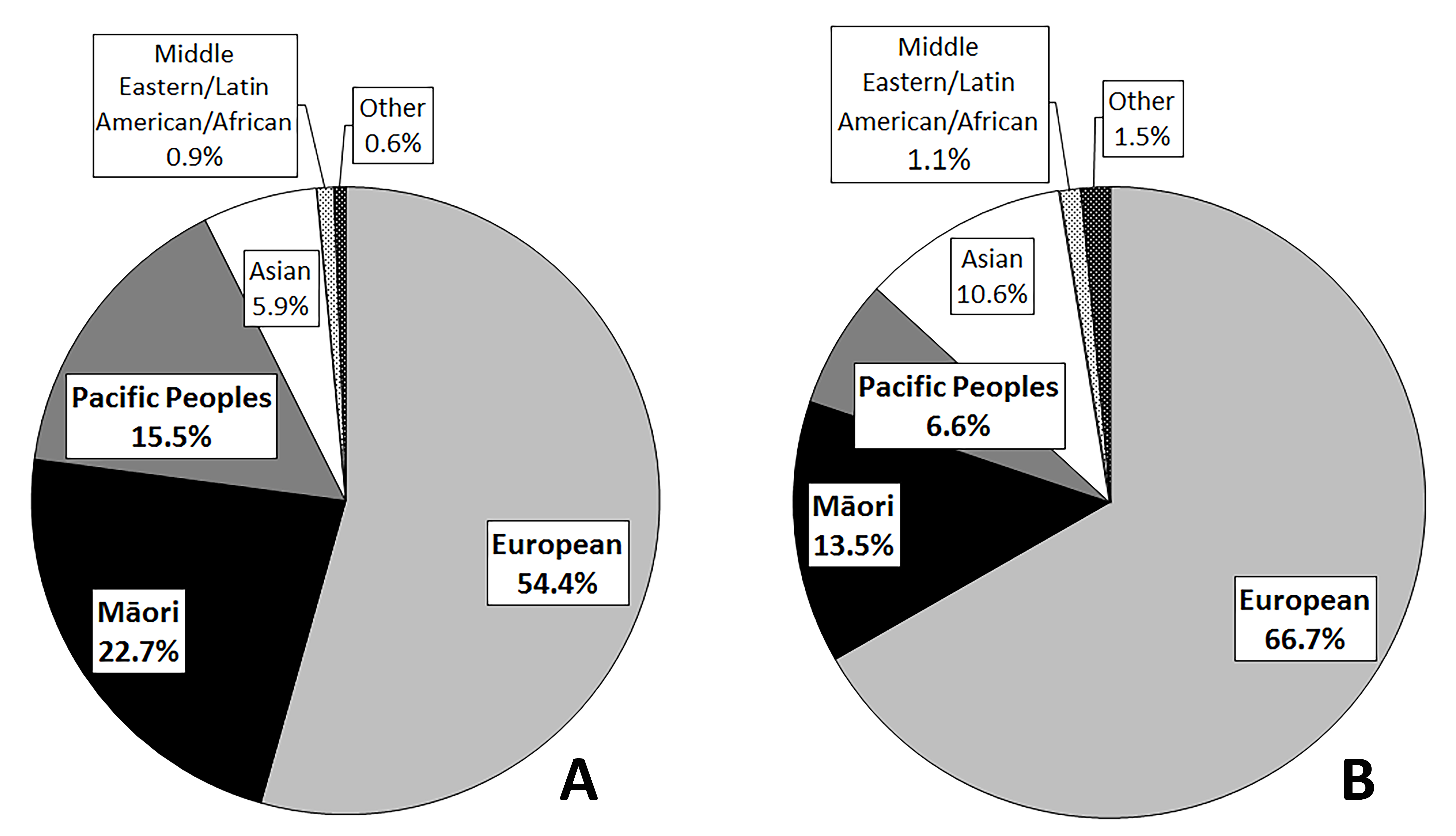 Fig 1. Ethnic distribution. Left, all cases of Keratoconus in the ARK study (N=1,869). Right, all individuals captured in the 2013 New Zealand Census2