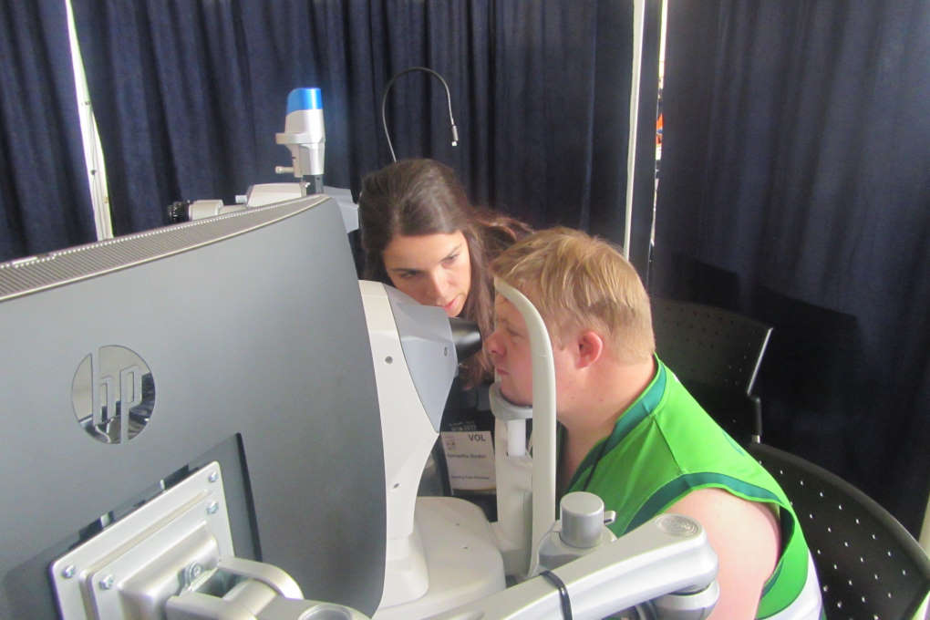Dr Samantha Simkin and Max Nyenkamp at the TMS-4 corneal topographer