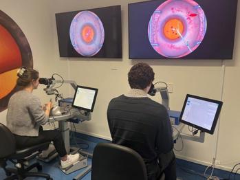 Students getting to grips with simulated cataract surgery using the EyeSi simulator