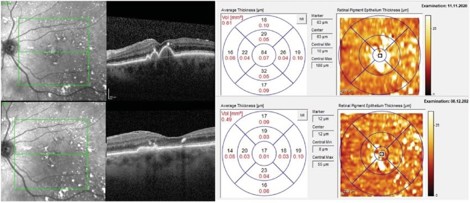 A significant reduction in macular drusen volume, without photoreceptor or retinal pigment epithelium loss, plus a four-letter increase in BCVA, was observed (75 to 79 letters) at month 13 following four PBM  treatments. Source: LIGHTSITE III study (Creative Commons 4.0 CCBY-NC-ND)¹