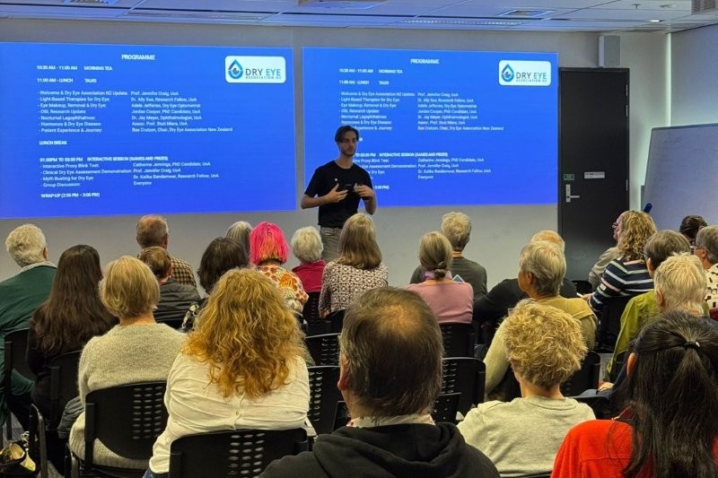 The day drew a full house, with many attendees being people with chronic dry eye, who came ready to learn but also to share their stories. Held on 18 May in the foyer of the Faculty of Medical and Health Sciences at the University of Auckland (UoA), the event created a warm and welcoming space for patients to come together and feel understood by eye care professionals (ECPs).