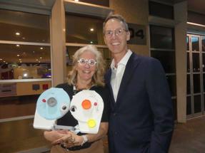 Dr Sarah Crowe with her remote-testing refraction device and Prof Angus Turner