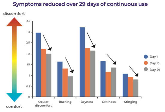 Graph 1. Symptoms reduced over 29 days of continuous use