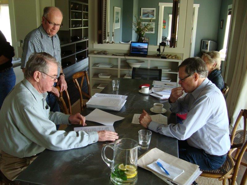 Dr David Sabiston, Mike Webber, John Veale and Trish Gribben working on Rose Charities business in Christchurch
