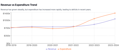 ODOB's financial statements tell a story of what could be described as an institutional crisis that becomes more damning when compared to its actual service delivery (see Figs 1-4).