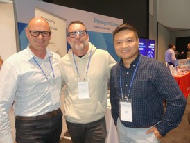 Paragon Care’s Bruce Wilmshurst and DFV’s Gian Victoria with Peter Walker (centre) at CCLS NZ 2025